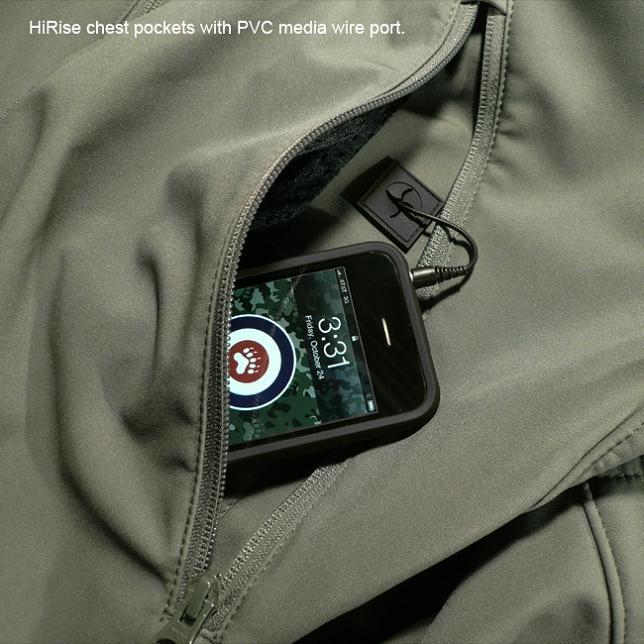 กระเป๋าส่วนหน้ามีช่องไว้ซ่อนสายหูฟัง สายที่รกรุงรังจะถูกซ่อนเก็บไว้ที่ช่องลับด้านในตัวเสื้อ