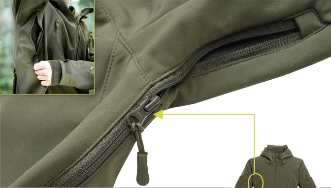 และจุดเด่นอันสุดท้าย สำหรับคนที่ชอบเก็บของใช้ไว้ใกล้ตัว คงชอบไม่น้อย นั่นก็คือ เสื้อแจ็คเก็ต TAD GEAR ตัวนี้มีช่องเก็บของเยอะมาก กระเป๋าซิปมี 8 ช่องเลยทีเดียว ส่วนหน้าอกซ้ายขวา 2 ช่อง แขนซ้ายขวา 4 ช่อง ด้านหลังอีก 2 ช่อง ใช้เก็บของได้จิปาถะ ไม่ว่าจะเป็น ของใช้ต่างๆ โทรศัพท์ ไฟฉาย มีดพก ฯลฯ